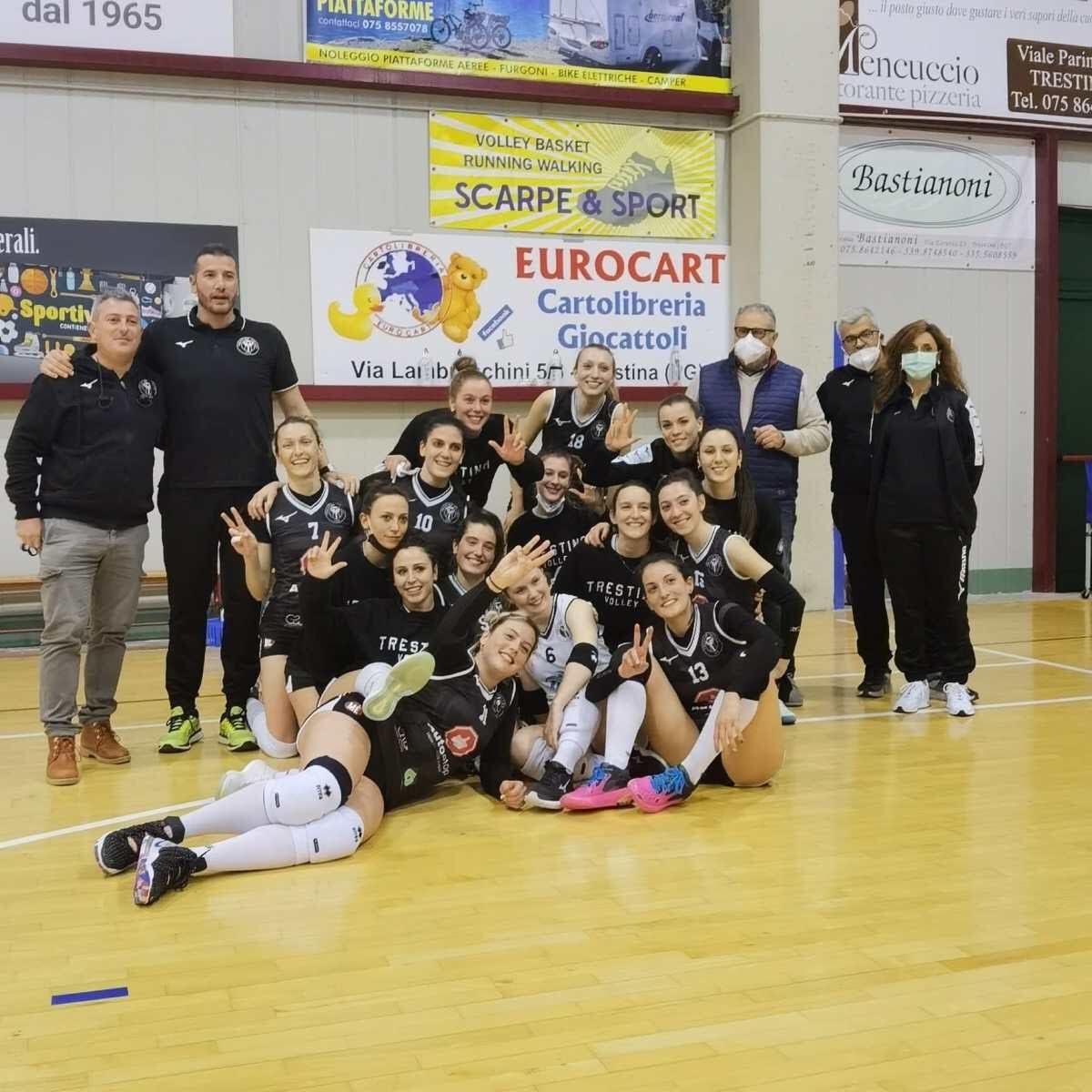 ROSTER TRESTINA VOLLEY : 2 Volpi Felicita (L) 3 Polenzani Anna 5 Montacci Letizia 6 Lillacci Alessia (L) 7 Cerbella Federica 8 Paradisi Sofia 9 Giunti Greta 10 Cicogna Arianna 11 Tarducci Linda (cap.) 12 Fiorini Aurora 13 Bertinelli Francesca 14 Giambi Michela 15 Mancini Francesca 17 Cesari Giada (L) 18 Ragnacci Beatrice Presidente: Giampaolo Rossi; Direttore sportivo: Nicola Mattei; 1° Allenatore: Giampaolo Rossi; 2° Allenatore: Monaldi Mirko; 3° Allenatore: Polenzani Mauro; 1° Fisioterapista: Marconi Andrea; 2° Fisioterapista: Bianchi Paolo; Medico sociale: Norgiolini Silvia; Ortopedico: Michele Palleri; Radiologo: Boncompagni Emanuele; Scout: Merli Matteo; Addetto stampa: Mara Rosi; Addetto agli arbitri: Stefano Mariangeli; Art director: Michele Montanucci.