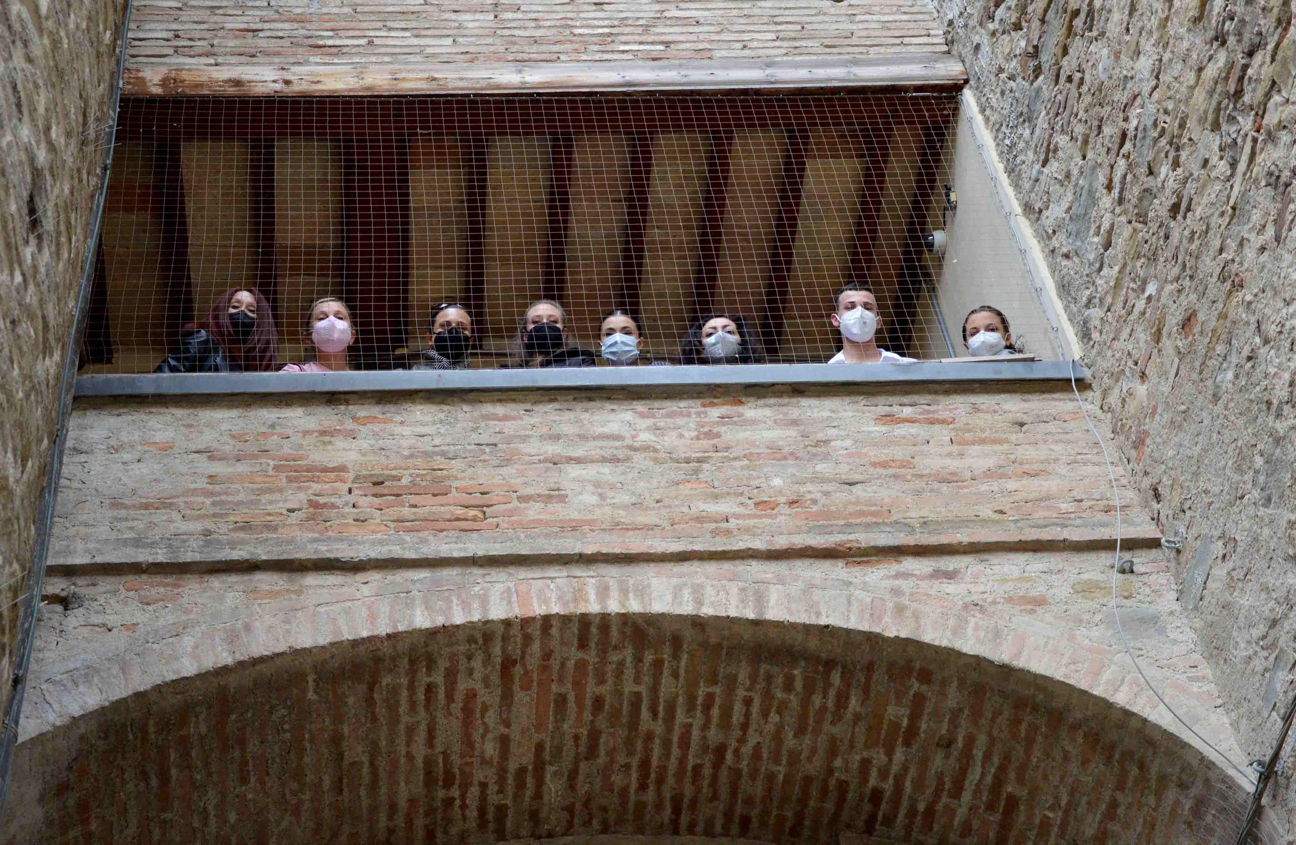 Gaia, Elena, Aurora, Anna, Davide, cinque allievi ballerini accompagnati dalle rispettive insegnanti hanno la soglia di ingresso del monumentale Campanile Cilindrico e percorso in salita gli oltre cento gradini, compresa l’ultima rampa in legno, che conducono alla sommità della struttura di rara bellezza architettonica ad oltre 40 metri di altezza incastonato fra la cattedrale, il palazzo comunale, segno distintivo e inconfondibile della città. A passo di danza in punta di piedi i ballerini “acrobati” (scrupolosi nel rispettare le rigide misure di sicurezza) sono stati protagonisti di una performance spettacolare ed unica nel suo genere immortalata in un video che da oggi è in rete sui canali social del consorzio “Castello Danza”, oltre 700 allievi in rappresentanza di sei scuole del territorio che nel mese di ottobre 2020, hanno dato vita ad un’esperienza unica nel panorama artistico: Fb Castello Danza, Instagram @castellodanza, Youtube, Castello Danza. Un bellissimo omaggio alla cultura, arte, spettacolo, ideato dalla presidente del consorzio, Maria Cristina Goracci e da tutto lo staff, realizzato dal bravo videomaker, Massimo Radicchi in collaborazione con il museo Diocesano, la direttrice, Catia Cecchetti ed il sostegno del comune di Città di Castello, attraverso l’assessore alla Cultura, Vincenzo Tofanelli, oggi, nel giorno in cui si celebra la “Giornata Internazionale della Danza” promossa dall'International Dance Council dell'UNESCO. Una giornata di festa che accomuna tutti i Paesi del mondo. La commemorazione, è istituita nel 1982 per il Comitato Internazionale della Danza – C.I.D. dell'Istituto Internazionale del Teatro (ITI-UNESCO) commemora la nascita di Jean-Georges Noverre (1727-1810), che fu il più grande coreografo della sua epoca, il creatore del balletto moderno. Ogni anno un personaggio di spicco della danza mondiale scrive un messaggio ufficiale. “E’ stata una emozione fortissima assistere all’esibizione in salita dei giovani ballerini in una location mozzafiato unica nel suo genere, simbolo della storia e della tradizione cittadina e non solo. Oggi in occasione della giornata internazionale della Danza, con questo video in rete visibile da tutti, abbiamo voluto dare un segnale di resilienza e ripartenza e far sentire tutta la nostra vicinanza a tutti gli artisti che da oltre un anno sono messi in ginocchio dallo stop imposto dalla pandemia. La salita al Campanile e poi il saluto dei ragazzi dalla sommità del monumento da dove si scorge un panorama di rara bellezza – precisa con un pizzico di commozione e orgoglio la Presidente di Castello Danza, Maria Cristina Goracci – assume proprio oggi un simbolismo toccante: la scala angusta, tortuosa, buia, sconnessa, orienta l’immaginario a ripercorrere tutto il difficile momento vissuto dalla Danza”. “Da quel punto più alto dell’edificio si apre lo sguardo ad una percezione positiva e fiduciosa del momento: la vista luminosa, estesa, sconfinata, non possono che essere segnali chiari di un mondo che guarda avanti in maniera costruttiva, propositiva, edificante”. Determinante per la buona riuscita dell’evento “social”, la fattiva collaborazione del Museo del Duomo nella persona di Catia Cecchetti e la Diocesi di Città di Castello per la sensibilità ed apertura dimostrata per la realizzazione del progetto per la prima volta in assoluto in queste performance e modalità operative”. “Oggi – dichiara Cecchetti - il sostegno della fede è quanto mai sentito e forte per combattere e contenere il dilagare della pandemia che da tempo ormai affligge l’intero continente. Anche il mondo della danza si è fermato come gran parte delle attività per contenere il virus e le sue varianti. Vogliamo ringraziare allievi ed insegnati per la professionalità, la tenacia e la grande passione manifestata in questo momento così difficile. Continuando a rispettare le regole previste dalle normative attuali e unendo forze diverse dell’arte nelle sue più diverse sfaccettature – conclude - riusciremo a superare piano piano le difficoltà e a guardare con fiducia al futuro”. Presente per l’occasione anche l’Assessore alle Politiche culturali del Comune di Città di Castello, Vincenzo Tofanelli, che ha sottolineato la collaborazione con il Museo diocesano e la Diocesi tutta e il sostegno al mondo della danza: “oggi è un giorno importante per la danza, la cultura, arte e spettacolo, per certi aspetti memorabile grazie alla esibizione e alla passione dimostrata da questi straordinari ballerini”. Risalente ai secoli XI e XII, il Campanile cilindrico del Duomo è testimone unico delle lontane origini romaniche della Cattedrale tifernate. La parte inferiore è la più antica, mentre la congiunzione superiore gotica, caratterizzata da un doppio ordine di aperture indica interventi successivi, risalenti al 1283-1284. Il Campanile ha una circonferenza esterna di m. 7, interna di m. 4,50 ed una altezza di m. 43,50. La struttura termina con un coronamento a cono in cui è ubicata la cella campanaria. Il Campanile tifernate si ricollega ad analoghe costruzioni diffuse a Ravenna a partire dal IX secolo; in epoca romanica, infatti, giungono nell’Umbria settentrionale modi architettonici e decorativi tipici dell’arte bizantino-ravennate. Tali influssi si possono riscontrare nei campanili rotondi presenti nell’Alta Valle del Tevere, analoghi a quelli ravennati. Il monumento, costituisce uno dei rari esempi di struttura cilindrica, in tutto il Centro-Italia e non solo, che lo rende particolare, caratteristico ed assolutamente inconfondibile. Da qualche giorno come il Museo Diocesano e le altre strutture artistico-culturali della citta’ anche il Campanile Cilindrico ha riaperto i battenti alle visite: dal lunedi al venerdi, 10.00-13.00/16.00-18.00, festivi e prefestivi su prenotazione. Info: museo@diocesidicastello.it, tel. 075-8554705