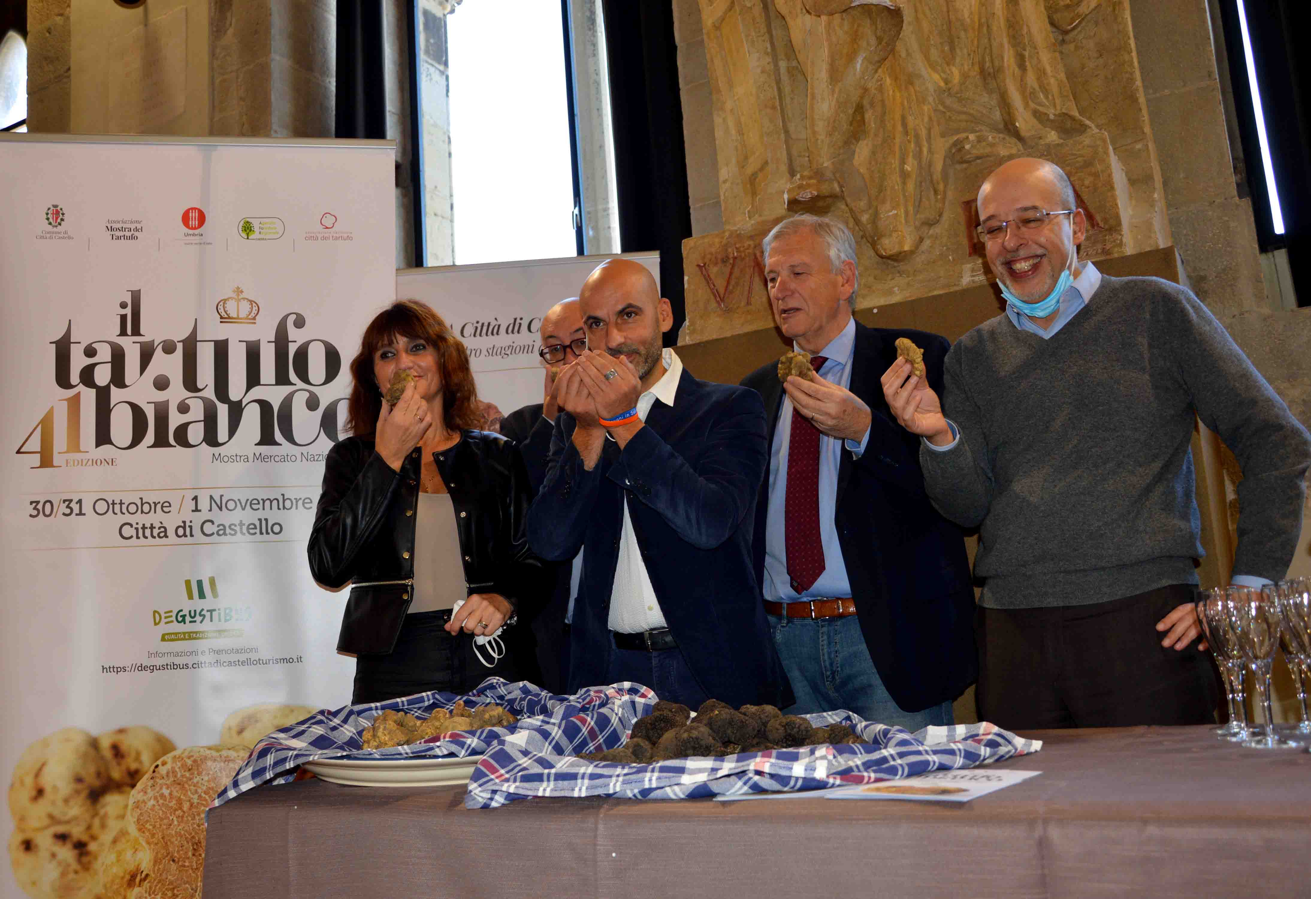 Weekend di Ognissanti all’insegna del tartufo bianco e delle eccellenze agro-alimentari. Dopo lo stop dell'edizione 2020 dovuta all'emergenza sanitaria, torna da sabato 30 ottobre a lunedi 1 novembre a Città di Castello la 41esima edizione della Mostra Mercato Nazionale del Tartufo Bianco: una tre giorni diventata tappa fissa per gli appassionati di prelibatezze, buongustai e soprattutto del tartufo bianco dell’Alto Tevere, re incontrastato della tavola. La Mostra fin dal suo esordio, è stata un motore fondamentale di promozione non solo per il tartufo bianco, ma per tutto il territorio. Questa nuova edizione, ha sì il profumo inconfondibile del tartufo, ma anche della ripartenza con un'attenzione particolare alla territorialità e alla tipicità del patrimonio agro-alimentare. L’evento promosso dal comune di Città di Castello, dall’associazione Mostra del Tartufo, dall’associazione Tartufai, insieme alla Regione dell’Umbria e agli enti pubblici locali, tra cui il GAL con il progetto “DeGustibus”, sarà un’occasione da non perdere. Una vetrina d’eccezione per celebrare tutte le tipologie del tartufo, perché in questa zona, per via del microclima, ogni tartufo ha la sua stagione, con un’attenzione in particolare alla “trifola” dell’Alto Tevere umbro, (“Tuber magnatum pico”, prelibato tartufo bianco) che matura proprio in autunno. “Le quattro stagioni del tartufo” non a caso è lo slogan, scelto già da alcune edizioni, per distinguere la specifica territorialità e, l’esercito di cavatori, circa un tifernate ogni venti, fanno di Città di Castello la “capitale del tartufo” e, soprattutto nella stagione culmine di questa produzione, una fabbrica vera e propria di tutte le pesature e per tutte le tasche. Il prezzo del tartufo bianco è aumentato circa del 30% arrivando in media a 300-400 euro all'etto come hanno sottolineato associazioni di categoria del mondo agricolo qualche giorno fa. Si tratta di valori sui massimi toccati negli ultimi anni con i 350 euro nel 2013, i 500 euro nel 2012 e i 450 euro all'etto del 2017 per pezzature medie dai 15 ai 20 grammi. A far alzare le quotazioni è stato il lungo periodo di siccità che ne ha frenato le nascite, ma ora con le possibili precipitazioni in autunno, si potrebbe vedere positivo per le regioni vocate per la raccolta, fra cui l'Umbria. Il Tuber magnatum Pico si sviluppa in terreni che devono restare freschi e umidi sia nelle fasi di germinazione che in quella di maturazione. L'arrivo della pioggia, dunque, fa sperare cercatori e appassionati che affollano mostre e sagre dedicate al tartufo. Città di Castello, capitale della “trifola” è anche capofila del territorio dell’Alta Valle del Tevere, come socio dell’Associazione Nazionale Città del Tartufo, della proposta di candidatura, presentata dal MiC per l’Italia all’UNESCO, della “Cerca e cavatura del Tartufo in Italia: conoscenze e pratiche tradizionali” affinché il vasto complesso di saperi che consentono ai tartufai di cercare e cavare il prezioso fungo, fosse riconosciuto come patrimonio immateriale dell’umanità, garantendone la salvaguardia e la trasmissione alle giovani generazioni. "La mostra da sempre ed ora più che mai e' un evento fondamentale per il tessuto economico-turistico del nostro territorio – ha dichiarato Mauro Severini, in rappresentanza del comitato promotore nel corso della conferenza stampa di presentazione - purtroppo abbiamo dovuto annullare l'edizione 2020 a causa della pandemia e quest'anno, grazie all'arrivo dei vaccini, con il contributo di tutti siamo riusciti ad allestire una edizione in sicurezza, mantenendo vivo lo spirito della manifestazione che fa parte integrante del nostro tessuto cittadino, della storia, delle tradizioni". “Il tartufo è una eccellenza che caratterizza da sempre il nostro territorio e da oltre 40 anni grazie alla mostra mercato riesce a promuovere la città e le altre eccellenze culturali, storico-artistico-ambientali. Grazie anche al tartufo ed al suo richiamo irresistibile, i ristoranti e le strutture ricettive sono tornati ad essere al centro dell’attenzione e gradimento di turisti e visitatori come nei migliori momenti del passato: segnali che fanno ben sperare per il futuro”, ha precisato il sindaco di Citta’ di Castello, Luca Secondi che ha ringraziato tutti gli enti, l’associazione mostra del tartufo, la regione umbria, il Gal e i comuni altotiberini per la fattiva collaborazione e sinergia. “Un grazie particolare ai tartufai e ai loro splendidi cani, campioni del fiuto veri e propri protagonisti della nascita e del successo della manifestazione nel corso degli ultimi decenni”, ha concluso il sindaco Luca Secondi, affiancato dal sindaco di Pietralunga, Mirko Ceci, del direttore del Gal Alta Umbria, Matteo Montanari e del dirigente scolastico dell’International Campus Patrizi Baldelli Cavallotti, Marta Boriosi. Durante la tre giorni della mostra nelle piazze del centro storico si svolgeranno mercati, saloni, degustazioni, laboratori del gusto, cooking show. Non mancheranno eventi, quali degustazioni gratuite, a base di piatti tradizionali con ricette impreziosite dal pregiato tartufo che sono organizzate tramite il progetto DeGustibus, finanziato dal GAL Alta Umbria con Il comune di Città di Castello come capofila. I cooking show vivacizzeranno la mostra e permetteranno ai visitatori di fare delle vere esperienze sulla conoscenza dei sapori e del gusto dei prodotti agroalimentari di eccellenza del territorio. Tartufo, prodotti enogastronomici locali e cooking show quindi nel centro storico di Citta di Castello, all'interno del Mercato sapore di tartufo allestito come ogni anno in Piazza Matteotti dove saranno presenti come nelle passate edizioni, Giuliano Tartufi, Penna Tartufi, Il Tartufaro, Mirko Tartufi, Tartufi Martinelli e Jimmy Tartufi che proporranno il meglio del tartufo locale e dei prodotti a base di tartufi. Il Mercato dei Sapori 