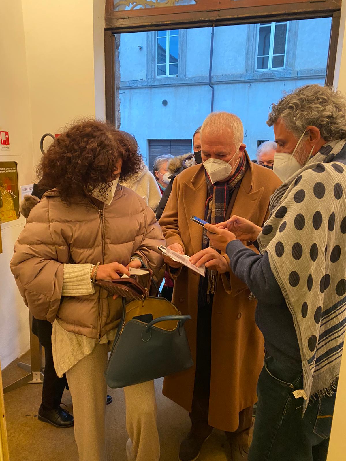 Prima di salire sul palco per interpretare "Uno, nessuno e centomila", Enrico Lo Verso ha voluto incontrare il pubblico degli Teatro degli Illuminati di Città di Castello, e lo ha fatto in un modo originale ma molto calato nell'attuale momento di emergenza sanitaria: controllando il green pass all'entrata. "La sicurezza deve essere sempre al primo posto se vogliamo recuperare la normalità di una domenica pomeriggio a teatro, la bellezza di condividere emozioni. Per questo anche se può sembrare macchinoso e se dobbiamo avere la pazienza di fare un po' di fila, vale la pena se in cambio avremo la libertà di fare le cose che ci piacciono". Grande risposta del pubblico di Città di Castello anche per questo spettacolo fuori abbonamento che ha proposto un allestimento pluripremiato e con alle spalle già 400 sold out. "Sono molto contento anche perchè tra gli spettatori ho visto molti giovani e non è così scontato". Commenti positivi anche dall'assessore alla Cultura Michela Botteghi perchè "la proposta è piaciuta. E' un arricchimento della stagione di prosa e danza che tornerà il 22 febbraio con un classico di Di Filippo e dieci attori in scena. La scelta della domenica pomeriggio mi sembra incentivi la presenza e la riproporremo. Voglio ringraziare Enrico lo Verso per la disponibilità e per il suo sincero amore per il teatro. Credo che tutti abbiamo vissuto momenti molto intensi e spero che torni presto a Città di Castello. L'invito è già stato fatto".
