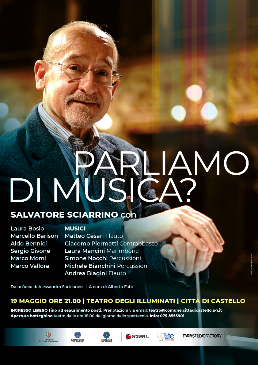 Parole, musica, amici: tutto su Sciarrino: giovedì 19 maggio 2022 serata tributo della città al maestro. Salvatore Sciarrino si racconta sul palco della sua città d’elezione: giovedì 19 maggio 2022 alle ore 21.00 il Teatro degli Illuminati di Città di Castello ospiterà l’evento “Parliamo di musica”, “un omaggio da parte della città dove ha scelto di vivere e dove svolge una parte importante del suo lavoro creativo”. “Sciarrino è una delle più alte espressività artistiche contemporanee in campo musicale” dichiarano il sindaco di Città di Castello, congiuntamente all’assessorato alla Cultura, annunciando la manifestazione, che sarà ad ingresso gratuito attraverso la prenotazione, fino ad esaurimento dei posti disponibili all’email cultura@comune.cittadicastello.pg.it. Sul palco con il maestro tanti ospiti: Laura Bosio, giornalista e scrittrice, che accompagnerà gli interventi della serata, in cui parole, pensieri, ricordi e musica si alterneranno alle voci degli amici e dei colleghi che il maestro Salvatore Sciarrino ha coinvolto nell’iniziativa, nata da un’idea di Alessandro Sarteanesi con la direzione artistica di Alberto Fabi. “Sono tante le domande sulla musica che ciascuno di noi vorrebbe fare. Ma a volte ci sentiamo a disagio: troppo spesso gli intenditori ci dicono che, non sapendo di musica, non possiamo capirla. Approfittiamo di questa occasione, una festa per il maestro Sciarrino, da passare fra amici, per fare tutte le domande che vogliamo” aggiungono sindaco e assessorato, sottolineando che la serata verrà registrata e diventerà un documentario a cura di Farm Studio Factory e un libro conversazione edito da Magonza editore tra Sciarrino e il giornalista Marco Vallora. A Vallora sarà affidato il compito di interloquire con il maestro insieme al filosofo Sergio Givone, al filosofo Marcello Barison, al violista Aldo Bennici, al compositore Marco Momi. Alle parole si alterneranno quattro performances dei musicisti Matteo Cesari al flauto, Giacomo Piermatti al contrabbasso, Laura Mancini al marimbone accompagnata da Simone Nocchi e Michele Bianchini e in chiusura il flauto di Biagini Andrea. “Salvatore Sciarrino ha scelto Città di Castello come sua residenza d’elezione, qualche anno fa abbiamo voluto donare i sigilli della città a questo nostro eccellente concittadino - si conclude la nota - Con l’evento di giovedì 19 maggio, insieme ai clubs Lions e Rotary, a Tecniconsul e Sogepu, che ringraziamo per aver sostenuto convintamente, insieme al Comune, la manifestazione, proviamo a conoscerlo e a conoscere lo straordinario mondo di atmosfere, suoni e suggestioni in cui nasce la sua musica”.