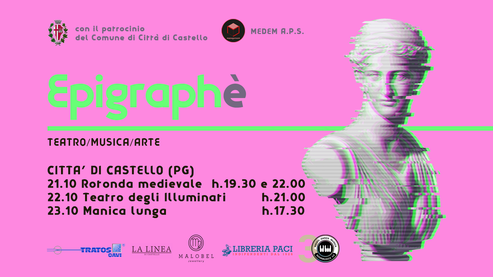 “Siamo particolarmente contenti del ritorno di questa manifestazione, che è una gemma dell’offerta culturale cittadina, perché riunisce l’arte, il teatro, la musica alla storia della città, creando una fusione davvero interessante e stimolante tra talenti e simboli della nostra comunità”. L’assessore alla Cultura Michela Botteghi presenta così la quarta edizione di “Epigraphè”, giovane rassegna di teatro, musica, arte dal sapore contemporaneo patrocinata dal Comune che proporrà un cartellone di tre eventi nei giorni 21,22 e 23 ottobre in altrettanti luoghi diversi di Città di Castello. “Per questa edizione – sottolineano Giovanna Guariniello, Enrico Paci, Maria Rosaria Vitiello e Mauro Silvestrini che hanno curato la manifestazione in collaborazione con Medem Aps - si è scelto di dare spazio e valore ad artisti che operano a livello nazionale e che hanno scelto la nostra città come luogo in cui vivere”. “Un modo per sottolineare quanto una proposta culturale che vuole avere grande respiro, con il suo carattere libero che punta a valorizzare esperienze indipendenti dai circuiti ufficiali, nasca come iniziativa fortemente integrata nel territorio che si rivolge a un pubblico eterogeneo, pensando di risvegliare gli animi della città e della vallata dopo gli anni difficili della pandemia”, osservano gli organizzatori, nel ringraziare il Comune e gli sponsor locali per il sostegno indispensabile a promuovere la rassegna. “Epigraphè” inizierà venerdì 21 ottobre con il concerto dei Mayzena alla Rotonda medievale in via della Rotonda (doppio appuntamento alle ore 19.30 e alle ore 22.00). Seguirà sabato 22 ottobre, alle ore 21.00 al Teatro degli Illuminati, lo spettacolo della Compagnia Teatro Macondo dal titolo “I manoscritti non bruciano”, lavoro di ricerca a partire dal romanzo di M. Bulgakov “Il maestro e Margherita”. Il programma si concluderà domenica 23 ottobre a partire dalle 17.30 presso la manica Lunga della Pinacoteca Comunale con Giuseppe Mongiello e Chiara Bianchi, che presenteranno “In Augura Azione”, azione partecipata che inviterà gli spettatori a completare una mostra durante la sua stessa inaugurazione: ogni partecipante avrà infatti la possibilità di arricchire l’allestimento portando oggetti ritenuti particolarmente significativi. A completare l’offerta della manifestazione sarà il percorso parallelo delle epigrafi, che, impresse nei luoghi di rappresentazione degli eventi, saranno rese protagoniste attraverso il racconto delle suggestioni dal passato per il presente di cui sono testimonianza: “?”, “Videor ut video”, “Via della Rotonda”. Sia il concerto che lo spettacolo teatrale avranno un ingresso a 8 euro, con possibilità di abbonamento a 15 euro per entrambi gli appuntamenti, mentre la mostra sarà a ingresso gratuito. Per la prevendita dei biglietti è a disposizione il numero di telefono 320.8034791. Tutte le informazioni sulla manifestazione potranno essere consultate sul sito web e sui canali social di Medem o attraverso la scansione con lo smartphone del QR Code stampato sul materiale promozionale dell’evento.