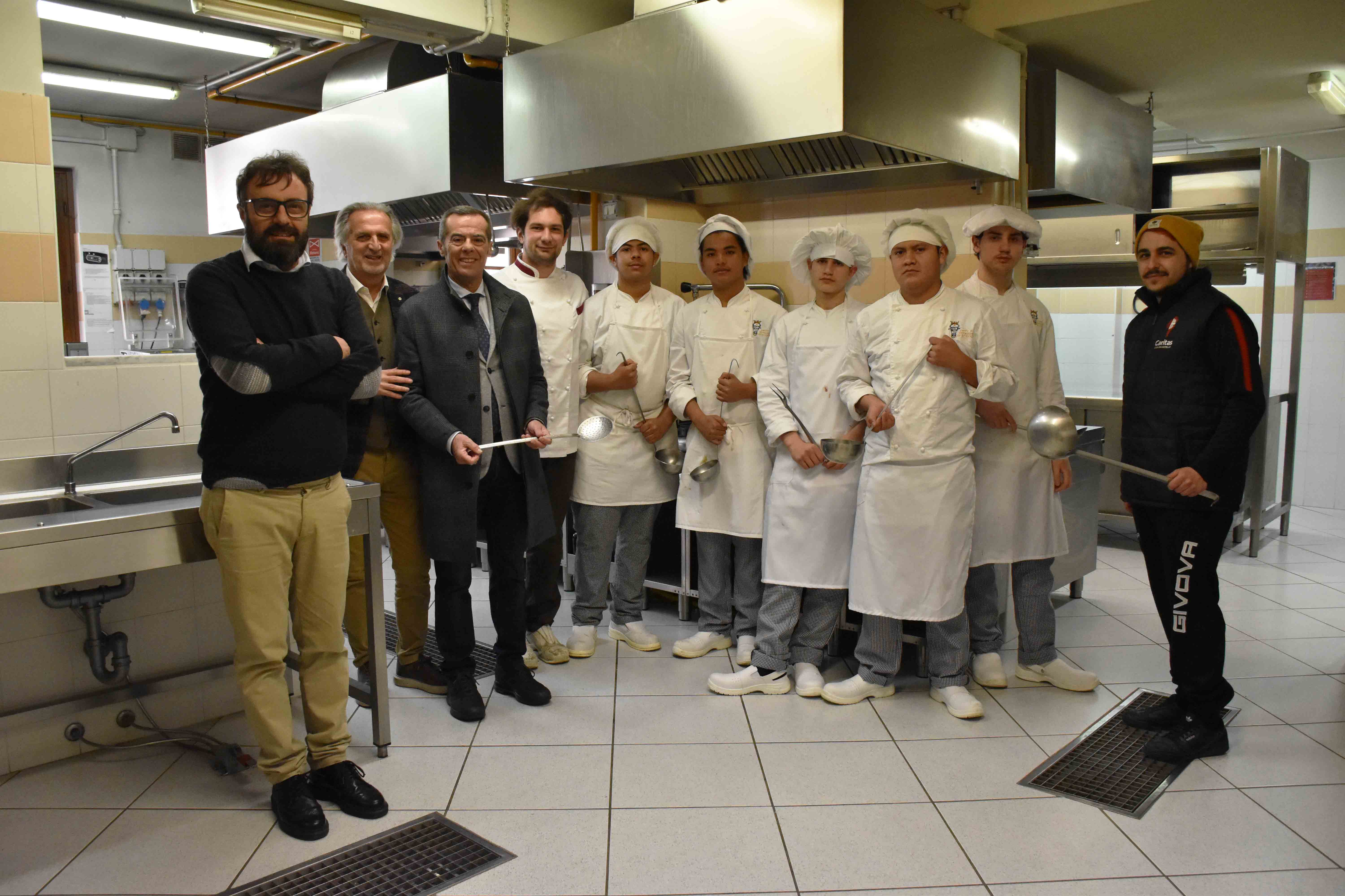 Dal laboratorio e i “fornelli” del centro di formazione professionale alla “mensa” della Caritas. Corsi di cucina creativa e solidale: a scuola per diventare chef, magari “stellato”, preparando piatti e pasti per chi ha bisogno e si trova in difficoltà. Per quattro mesi, a partire da oggi, i giovani allievi del percorso di Istruzione e Formazione Professionale per Tecnico di cucina presso l’Asp “G.O. Bufalini” di Citta’ di Castello (unica Azienda di Servizio alla persona di natura Pubblica dell’intero territorio nazionale con missione nella Formazione Professionale) saranno anche aspiranti cuochi a servizio della Caritas diocesana e prepareranno i pasti per gli utenti della struttura in continua crescita. Nel progetto di impresa simulata intitolato "cuciniAMO", una delle prime esperienze a livello nazionale, saranno infatti coinvolti gli studenti del primo anno del percorso di Istruzione e Formazione Professionale per Tecnico di cucina, si tratta di 5 allievi, di cui alcuni minori non accompagnati che saranno accompagnati in questa esperienza dai docenti di cucina, Andrea Cesari, Luigi Manganelli e Lucio Valcelli. I ragazzi ogni mercoledì, giovedì e venerdì fino al 30 giugno prossimo faranno insieme al cuoco della mensa Caritas la verifica delle derrate alimentari in loro possesso e creeranno, in base alla dotazione alimentare a disposizione, settimanalmente un menù, che a rotazione potrà prevedere la preparazione di un primo o un secondo o un contorno nel numero richiesto necessario, in modo che i relativi pasti da asporto possano essere distribuiti giornalmente in aggiunta a quelli preparati della cucina della Caritas. "I nostri percorsi di Istruzione e Formazione Professionale prevedono che i ragazzi del primo anno, iscritti dopo il conseguimento del diploma di scuola secondaria di primo grado siano impegnati per oltre 500 ore in un'attività di impresa simulata nel settore dello specifico indirizzo, con l’obiettivo di fornire loro sia alcune nozioni realmente spendibili nel contesto produttivo locale per sviluppare un’idea imprenditoriale che le basi del lavoro per definire, in maniera cooperativa con il gruppo-classe, l’idea di fondo di un’impresa e le relative problematiche ed opportunità”, ha dichiarato il Presidente dell'Asp G.O. Bufalini, Giovanni Granci, oggi nel corso della conferenza stampa di presentazione assieme direttore Marco Menichetti, al direttore della Caritas Diocesana di Citta’ di Castello, Gaetano Zucchini, e agli amministratori dei comuni di Citta’ di Castello e San Giustino e i docenti del corso. “Quest’anno abbiamo deciso di gestire il progetto di Impresa formativa simulata andando oltre la “logica aziendale e produttiva” dedicandola a far conoscere ai ragazzi coinvolti una realtà sociale molto importante. Per questo abbiamo attivato una collaborazione con la Caritas di Città di Castello e con la sua mensa per permettere agli allievi di fare un’ esperienza formativa più profonda. Ci siamo resi conto che poteva essere un’occasione di crescita sociale dei nostri ragazzi: l’obiettivo sarà quello di cogliere e di evidenziare, a partire dalle situazioni e dalle storie incontrate sul territorio, elementi di prospettiva e di speranza. Esempi concreti di risposta e resilienza capaci di farsi carico delle situazioni di marginalità e vulnerabilità affiorate nel corso della pandemia nel nostro territorio, dando luogo ad una serie di triangolazioni positive, che possano far cogliere l’importanza di lavorare in rete, assumendo responsabilità diverse ma condivise". “La crisi socio economica degli ultimi anni, generata da molteplici fattori (pandemia, guerra, inflazione) ha determinato anche nel nostro territorio difficoltà per molti a soddisfare esigenze primarie”, ha precisato il direttore della Caritas, Gaetano Zucchini. La Caritas Diocesana di Città di Castello cerca di intervenire nei limiti delle sue possibilità per sostenere persone e famiglie in situazioni di particolare vulnerabilità: basti pensare che nell’anno 2022 i Centri di Ascolto hanno effettuato circa 930 colloqui che hanno evidenziato difficoltà al sostentamento alimentare, problematiche abitative, occupazionali e di varia natura. Nel corso dell’ultimo biennio, in particolare, l’attività correlata al sostegno alimentare nella Diocesi è cresciuta in maniera esponenziale fino ad arrivare agli attuali 100/110 pasti giornalieri preparati presso la Mensa Caritas, di cui circa 40/50 distribuiti in presenza e 60/65 in modalità di asporto, sostenendo così persone sole( italiane e straniere) e circa 50 famiglie, senza dimenticare l’azione effettuata all’interno dell’esperienza dell’Emporio della Solidarietà San Giorgio a cui afferiscono ormai 550 nuclei familiari (circa 1500 persone). “Sostenere tale impegno – ha proseguito Zucchini - è reso sempre più difficoltoso dall’ingente mole di lavoro ,grazie al contributo del personale Caritas e dei volontari e dall’approvvigionamento del materiale alimentare -i cui costi risultano aumentati considerevolmente- dato che il recupero delle eccedenze alimentari non soddisfa pienamente tale attività.” “Per tale motivo, nell’abitudine di Caritas diocesana di collaborare con le realtà del territorio, abbiamo chiesto la possibilità di un aiuto; la richiesta è stata accolta favorevolmente dall’ASP GO BUFALINI con la quale abbiamo stipulato una convenzione per l’attivazione del Progetto “CuciniAMO” sotto la forma di un’impresa formativa simulata che si tradurrà nell’impegno da parte dei ragazzi della Scuola di preparare una portata del menù per tre giornate alla settimana, sostenendo e favorendo così la distribuzione alimentare. Al di là dell’obiettivo prefissato, riteniamo importante sottolineare come l’attività della Scuola e degli studenti si traduca generosamente in gesti concreti verso i più fragili: un segnale di grande sensibilità che va a tes
