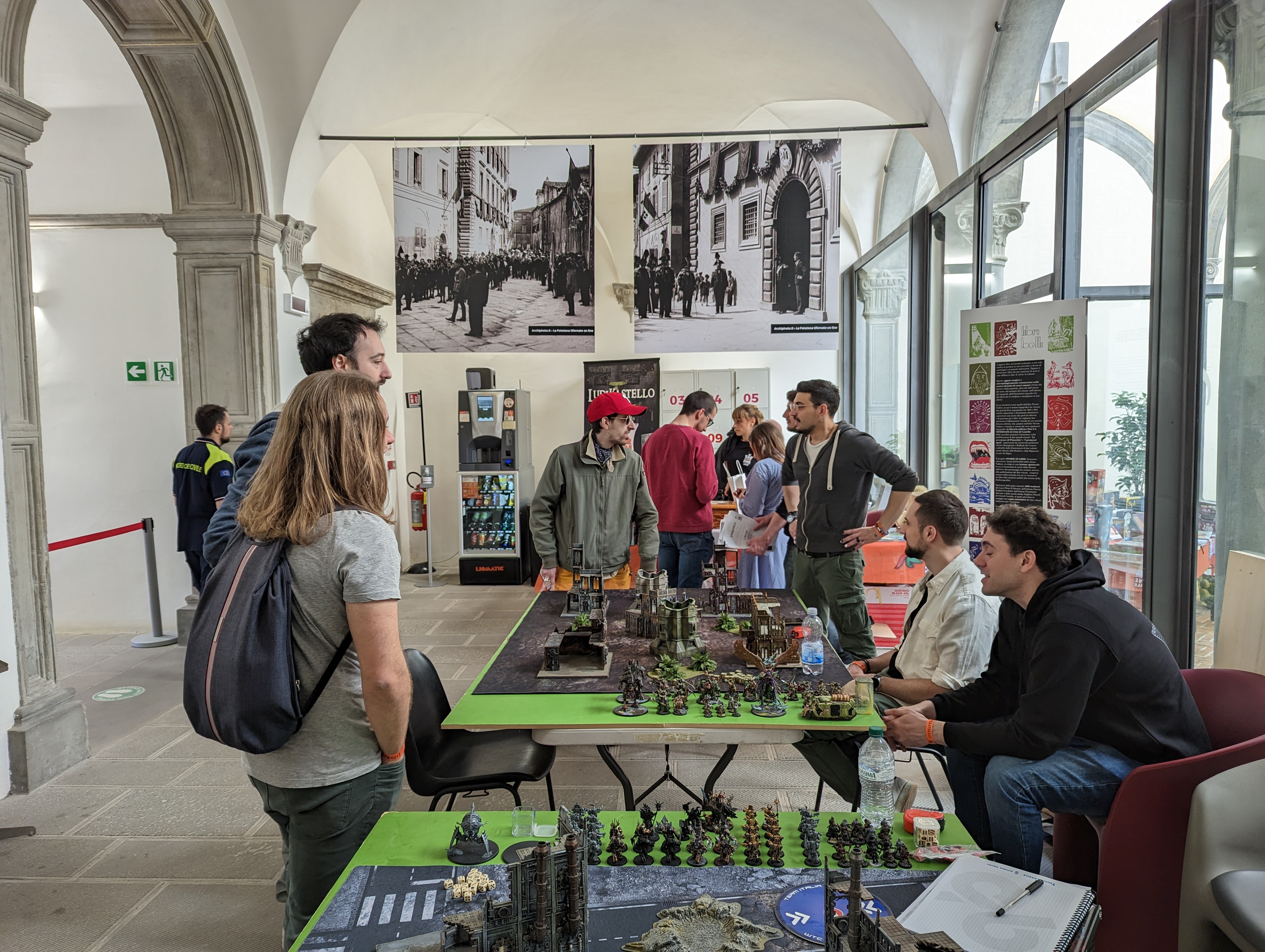Per due giorni la Biblioteca comunale Carducci sarà il regno del gioco e del divertimento con l’edizione 2023 di Ludikastello, la manifestazione promossa dall’associazione ludico-culturale Peter Pan con il patrocinio del Comune, che stamattina ha aperto le porte ai tantissimi appassionati che si sono dati appuntamento da tutta Italia per un evento tra i più importanti del settore in Italia. Le sale di palazzo Vitelli a San Giacomo hanno accolto visitatori arrivati appositamente per partecipare alle 80 sessioni di gioco in programma (due slot nella fascia oraria 10.00-13.00 e due tra le 15.00 e le 19.00 sia oggi, che domani per divertirsi tra titoli come Il Richiamo di Cthulhu, Forbidden Lands, Alien, The Black Hack, Dungeons & Dragons, Household, Sine Requie), per cercare carte e miniature da collezione, assistere agli eventi speciali, incontrare gli autori e i personaggi impegnati nei talk, ma anche semplicemente per condividere il piacere di incontrarsi, conoscersi, scambiarsi informazioni e curiosità, vivere insieme le passioni coltivate fin da piccoli. Insieme ai componenti del consiglio direttivo e ai soci, il presidente di Peter Pan Tommaso Radicchi ha accolto chi dalle prime ore del mattino si è messo in fila per entrare nella dimora rinascimentale di via XI Settembre e approfittare dell’opportunità di scoprire anche la ricchezza del patrimonio librario di una delle biblioteche più belle dell’Umbria. Gettonatissime le sessioni dimostrative di gioco da tavolo e torneistica, ma anche La Bottega Del Coboldo, il mercatino dei giochi usati aperto per l’intera durata della manifestazione, e l’area Retrograming e Console, la vera e propria sala giochi d’epoca visitabile sia oggi che domani. Con l’evento clou di stasera, Squarci sulla Tela, il gioco di ruolo live della nona edizione di Ludikastello ambientato nel museo della Tela Umbra che è già sold-out da giorni, a calamitare l’attenzione del pubblico sono stati gli appuntamenti con il multitavolo GDR a tema D&D 5e, chiamato Il Segreto di Ahghairon, il torneo di Citadels, l'indiscusso capolavoro di Bruno Faidutti, e i talk con l’associazione Peter Pan, lo youtuber Stef Kiryan, Play Life Academy e Leonardo Lucci. Nel programma di domani spicca il multitavolo GDR intitolato L'Arte di Butter, con protagonista Albert Butter, che renderà omaggio all’arte del maestro Alberto Burri (dalle ore 15.00 alle ore 19.00), i talk con la Compagnia Dell'Aquila (ore 14.00-15.00) e con Massimiliano Maras e il suo famosissimo Spaghetti Western (ore 16.30 - 17.30). Grande attesa tra curiosi e appassionati del genere per l’esibizione della Sala d'Arme Achille Marozzo di Città di Castello, che mostrerà in piazza del Marchese Paolo l’arte della spada medievale e antica italiana, con sessioni dimostrative e tornei dalle ore 10.00 alle ore 19.00. L’area dedicata ai giochi da tavolo accoglierà appassionati di tutte le età, con un occhio di riguardo alle famiglie, mentre le sessioni di gioco di ruolo offriranno molti titoli di ispirazione cinematografica. Per tutta la giornata sarà possibile sfidare la fortuna a Forza il Forziere, al quale collaborerà il consorzio di esercenti Pro Centro, che proporrà una caccia al tesoro rivisitata attraverso una mappa digitale della città realizzata appositamente per l'evento. Gli stand di Terre Ostili, Fumetteria TA-DA! e Raffo's Lab offriranno curiosità per tutti gusti e ci sarà da divertirsi a incontrare autori come Sergio Trenna, Nicola Santagostino, Vittorio Guerriero, Diego Magrini, Cabal GDR, Federico Umani, Enrico Valentini, Francesca Del Sere, Seeds RPG, ma anche il mondo dell’associazionismo, con AC Lokendil, Il Salotto di Giano, Kraken APS, La Tavola Rotonda, Arezzo Gaming Club, Hydra, Clan del Carro, Jack Frog Pain. I canali social dell’associazione Peter Pan guideranno i partecipanti attraverso tutti gli appuntamenti del programma, con la possibilità anche di prenotarsi per le sessioni di gioco calendarizzate.