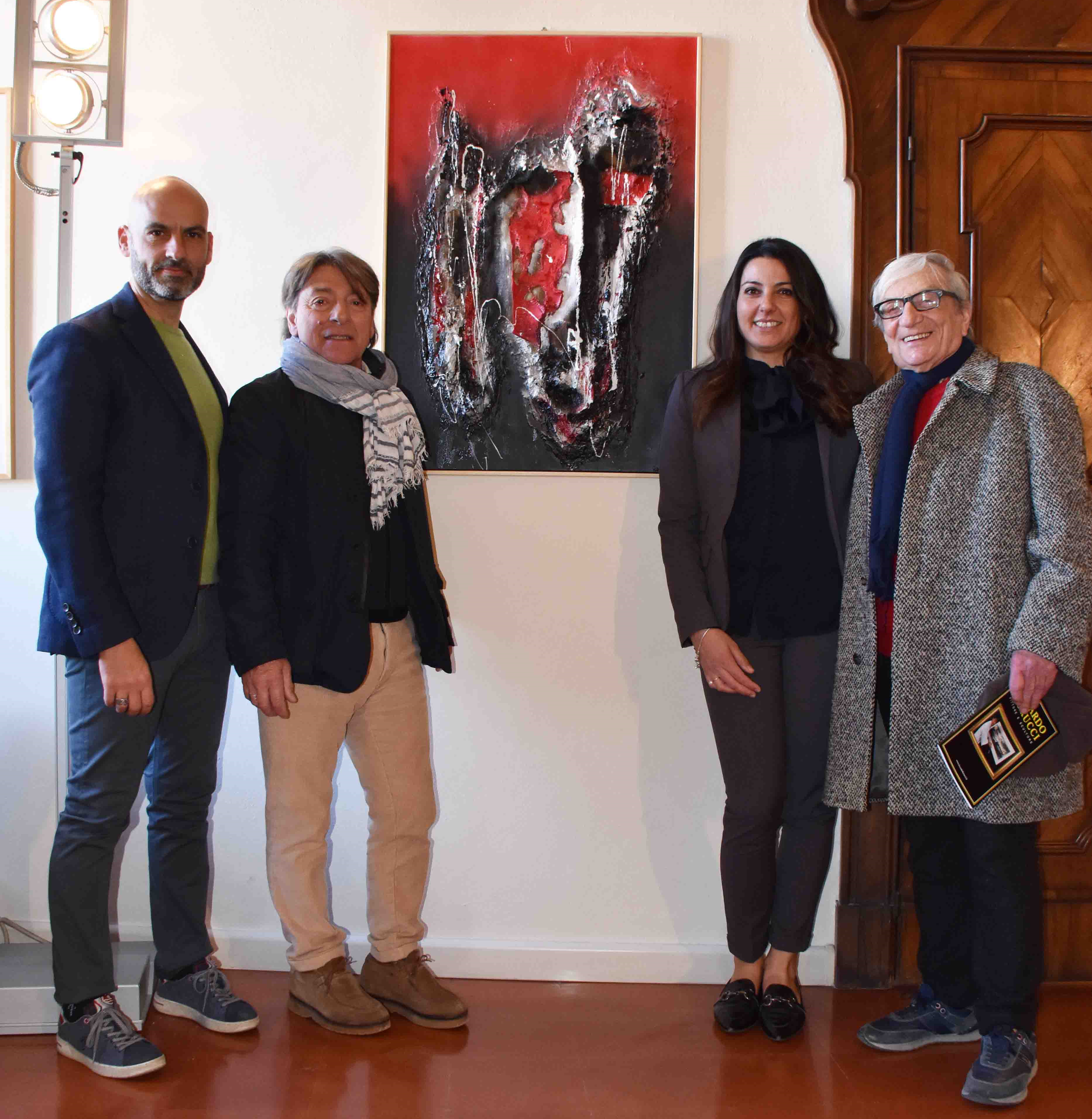 Alla galleria di opere d’arte dell’ufficio del sindaco, dominata dalla produzione di Alberto Burri, si è aggiunta anche una creazione del pittore Riccardo Fiorucci, che ha che ha voluto rendere omaggio a tutti i tifernati nel luogo simbolo del governo cittadino. L’artista ha consegnato direttamente nelle mani di Luca Secondi uno dei suoi recenti lavori dal titolo “Opera”, realizzata con tecnica mista su tela, mescolando sapientemente cemento, plastica, stoffa e colla ai colori che sono un tratto distintivo dei suoi quadri. L’omaggio alla città e al suo sindaco è avvenuto alla presenza dell’assessore alla Cultura Michela Botteghi e dell’amico Dino Marinelli, storico custode della Pinacoteca comunale e della memoria tifernate, che hanno condiviso con il primo cittadino l’ammirazione per la bellezza dell’opera. “Riccardo Fiorucci è un’artista che vuole bene a Città di Castello, che è molto legato alla sua terra: il suo è un dono che accogliamo con grande gioia, perché viene da un concittadino che attraverso le sue opere esprime e valorizza quell’identità tifernate fatta di talento, passione e cultura del lavoro che emerge in tanti settori e ci piace molto”, ha detto il sindaco Secondi, ringraziando l’artista a nome della città per la generosità del suo gesto. “La mia arte nasce dalla quotidianità che vivo nella mia città, che offre continui motivi di ispirazione con le preziose testimonianze del Rinascimento di cui è ricca e grazie all’eredità del maestro Alberto Burri, a cui mi ispiro e rendo omaggio nelle mie opere”, ha sottolineato Fiorucci, che ha affisso personalmente il quadro di fronte alla scrivania del sindaco. “Questa donazione è il mio modo di esprimere l’affetto per la città in cui sono nato e per i suoi cittadini”, ha spiegato l’artista.