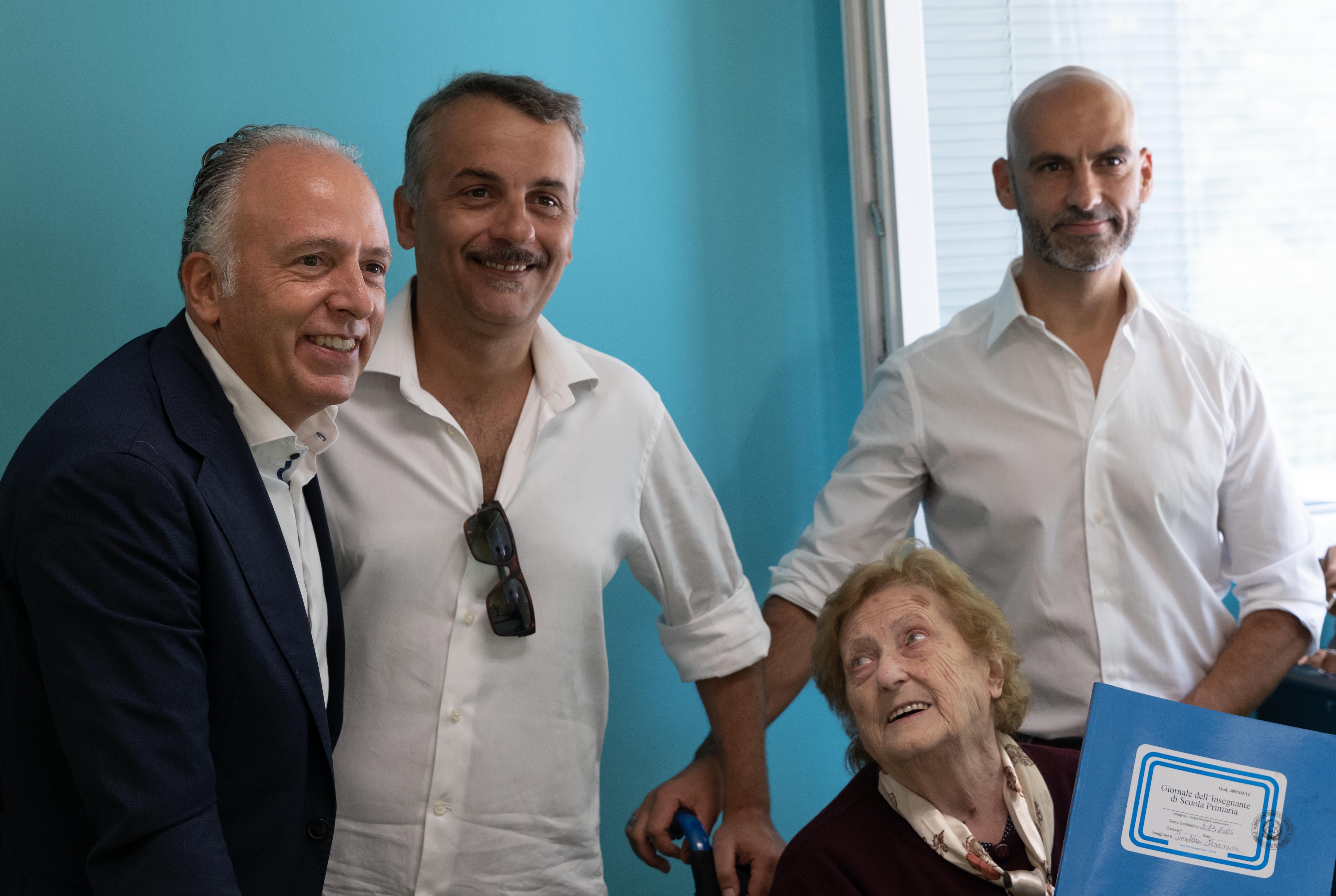Maestra per un giorno: dopo il diploma di maturità ora dietro la cattedra di una classe ad inaugurare il nuovo anno scolastico. Un sogno dopo l’altro che si avvera per Imelda Starnini (“classe” 1933), 90 anni, fresca di diploma, 76/100, conquistato dopo aver superato brillantemente la prova scritta e orale, lo scorso mese di luglio, all’Istituto San Francesco di Sales di Città di Castello (paritaria, scuola pubblica, unica in Europa, la cui fondazione risale al 1816) ad indirizzo Socio-Psico-Pedagogico. Questa mattina, accompagnata dalla figlia, Sara Mercatelli, si è presentata puntuale al suono della campanella di ingresso nella scuola Primaria di Userna, riqualificata completamente grazie al finanziamento ricevuto dal Ministero Università e Ricerca (MIUR ), scelta dal sindaco Luca Secondi e dall’assessore ai Lavori Pubblici, Riccardo Carletti, per inaugurare il nuovo anno scolastico (5.311 bambini e ragazzi di ogni ordine e grado) alla presenza del Dirigente del Secondo Circolo Didattico, Simone Casucci, della coordinatrice del plesso scolastico, Roberta Ranzi, dei docenti e dei “baby-studenti” visibilmente felici di questo inedito fuori programma. Era stato proprio il sindaco di Citta’ di Castello, Luca Secondi, nel corso della cerimonia di conferimento di una targa ufficiale a “nonna” Imelda presso la sala del consiglio comunale, subito dopo il conseguimento del diploma di maturità (“per lo straordinario esempio di vita e dedizione verso lo studio ed il sapere che con il raggiungimento del traguardo finale ha trasmesso a tutti d in particolare ai giovani”), ad invitare l’aspirante maestra a presiedere simbolicamente in classe l’avvio del nuovo anno scolastico. Lei, con il piglio di sempre ed il sorriso sulle labbra ha accettato di buon grado e questa mattina, felice ed emozionata, ha coronato, seppure per qualche ora, il sogno di una vita con in mano un registro, i libri, una cattedra da dove poter guardare negli occhi i bambini. Così è stato. “Un’emozione fortissima, forse ancora maggiore di quella che ho provato due mesi fa quando ho sostenuto l’esame di maturità fino al diploma – ha dichiarato la “maestra”, Imelda. “Essere qui in classe con tutti questi bellissimi bambini e bambine con i loro insegnanti, il direttore didattico, il personale della scuola, il sindaco e l’assessore – ha proseguito Imelda – è un altro sogno che si avvera, momenti unici che per tutta la mia esistenza ho immaginato di poter vivere: oggi ci sono riuscita”. “Mi raccomando – ha concluso la “maestra” Imelda rivolgendosi con amore verso i bambini in classe – studiate, leggete e seguite sempre con attenzione le lezioni, le vostre maestre, la scuola dopo la famiglia è la cosa più importante della vita, da qui uscirete, donne e uomini più forti, capaci di affrontare il futuro. W la scuola, buon anno scolastico a tutti voi e alle vostre famiglie”. “Il suo esempio è un prezioso stimolo per i giovani, affinchè possano coltivare l’amore per il sapere che non ha età, né tempi giusti, perché è sempre il tempo del sapere”, aveva scritto in una lettera indirizzata al Dirigente Scolastico dell’Istituto San Francesco di Sales, Simone Polchi, il Ministro dell’Istruzione e del Merito, Giuseppe Valditara, lo scorso mese di luglio, fra una prova e l’altra dell’esame di maturità, per evidenziare la storia di una donna che ha commosso l’Italia, divenendo un vero e proprio simbolo positivo per i giovani. Parole che il sindaco Luca Secondi e l’assessore ai lavori Pubblici, Riccardo Carletti, hanno ripreso e rilanciato dopo questa ulteriore prova di determinazione e amore per la scuola che Imelda ha dimostrato con un altro bellissimo gesto concreto, la presenza in classe. “Un’altra giornata speciale da scrivere nella storia della scuola, fatta di esempi concreti di vita vissuta, di umanità unica: una bellissima pagina per la scuola, per la comunità locale e nazionale ma soprattutto per i giovani”. “Un orgoglio per le nostre comunità – hanno sottolineato il sindaco ed assessore - che non dimenticheremo e che sarà un punto di riferimento per tutti noi. Grazie Imelda”. Il dirigente del Secondo Circolo Didattico, Simone Casucci, ha consegnato alla nuova “maestra, un attestato di pubblica benemerenza, “per aver dimostrato che non esistono barriere temporali per l’apprendimento durante tutto il corso della vita”. Al termine della inedita “lezione” della arzilla maestra, il sindaco Secondi e l’assessore hanno colto occasione per augurare a tutto il mondo della scuola buon lavoro e buon inizio, mettendo in evidenza gli interventi e i progetti di edilizia scolastica sul territorio comunale. La scuola Primaria di Userna ubicata in Via Polidori a Città di Castello è stata riqualificata completamente grazie al finanziamento ricevuto dal Ministero Università e Ricerca (MIUR ) per un importo pari ad Euro 682.852,00 Euro a cui è stato aggiunto un finanziamento comunale iniziale di Euro 85.000,00 ed uno finale tramite accensione di apposito mutuo presso la Cassa Depositi e Prestiti di Roma pari ad Euro 48.000,00 così per un costo complessivo di realizzazione dell’opera pubblica pari ad Euro 815.852,00. L’opera che è stata progettata e diretta da un raggruppamento temporaneo di professionisti con a capo l’ingegner, Emanuele Mori, ha interessato sia la riqualificazione strutturale che quella energetica ed acustica, dell’immobile. La scuola primaria di Userna, nel complesso accoglierà 79 alunni dislocati in 5 classi oltre ad un’aula multidisciplinare. I lavori sono stati consegnati in data 27/09/2021 alla ditta aggiudicataria dell’appalto Teknoopera s.r.l. con sede in San Cesareo (Roma) e sono stati ultimati in data 10/07/2023. “I lavori presso i due asili nido Alice Franchetti e Fiocco di Neve – hanno sottolineato il sindaco e l’assessore nel fare riferimento ai progetti di edilizia scolastica in
