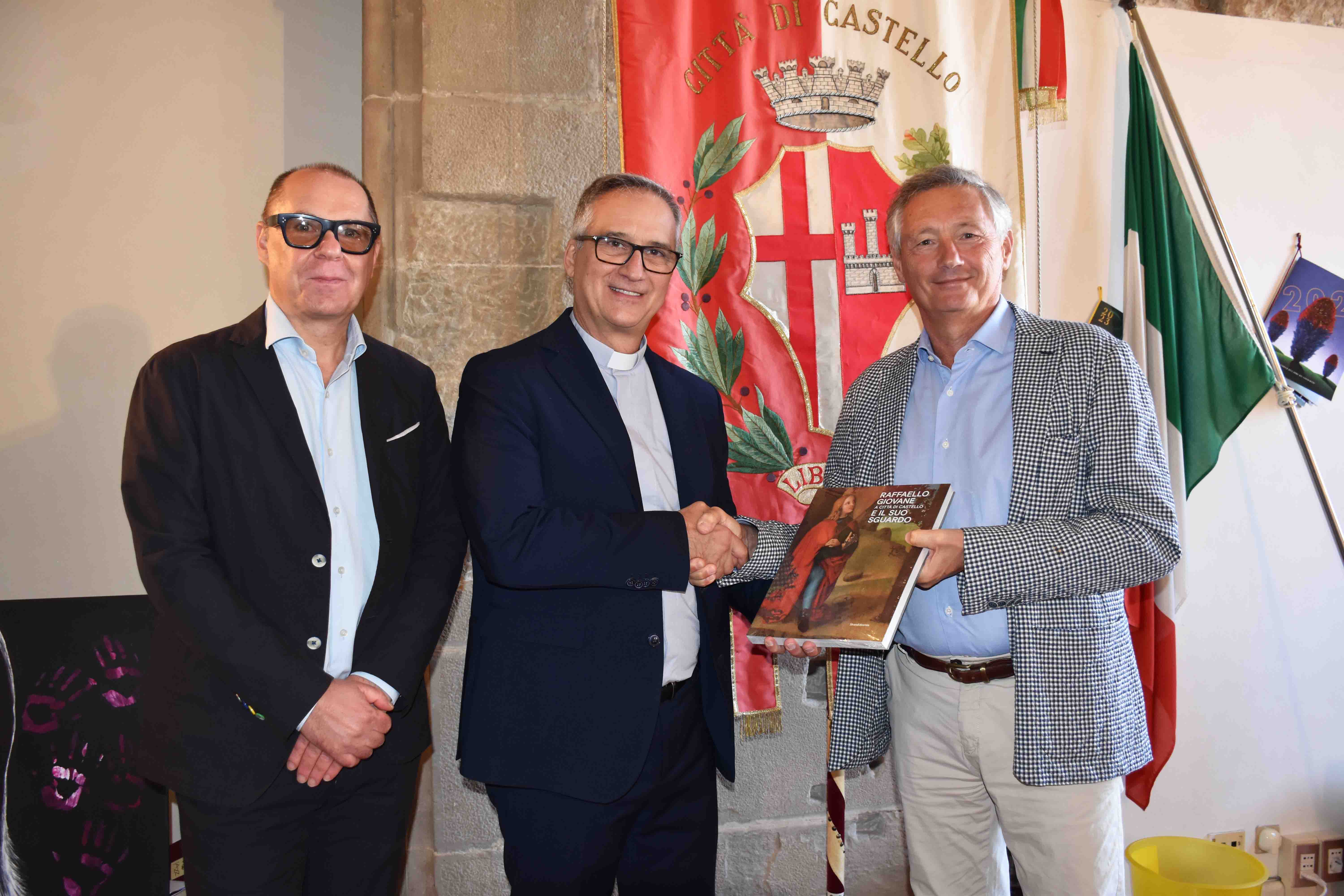 Le “Ragioni della Speranza”, seconda parte del programma “A Sua Immagine” (in onda il sabato pomeriggio a partire dalle 16.30) programma storico di Rai Uno, frutto della collaborazione tra il servizio pubblico e la Conferenza episcopale italiana, dedicato al commento del Vangelo della domenica, fa tappa a Citta’ di Castello. A partire da sabato 21 ottobre con replica la domenica mattina, un nuovo percorso racconterà come gli artisti nei secoli hanno rappresentato la fede, avendo come riferimento alcune importanti città italiane che custodiscono grandi tesori dell’arte. “Masaccio, Perugino, Pinturicchio, Giotto, sono solo alcuni dei pittori che ci accompagneranno in questo affascinante viaggio dal titolo “Custodi della bellezza”, perché come scrive il pittore Marc Chagall: “La Bibbia è la fonte cui hanno attinto, come in un alfabeto colorato, gli artisti di tutti i tempi””, si legge in una nota di presentazione. “Prima tappa del programma, sabato 21 Ottobre ore 16,30, è Città di Castello, nel cuore verde dell’Umbria, dove – attraverso gli artisti della Bottega Tifernate, guidati dal maestro Stefano Lazzari – conosceremo l’arte straordinaria di riprodurre i dipinti dei più grandi maestri”. Alla conduzione della trasmissione monsignor, Dario Edoardo Viganò, vicecancelliere della Pontificia Accademia delle Scienze e della Pontificia Accademia delle Scienze Sociali, con specifica competenza per il settore della comunicazione. “Da sempre le immagini e in particolare l’Arte è stata al servizio della Parola. L’Arte è parola silenziosa e al tempo stesso eloquente per rendere visibile l’invisibile”, conclude la nota di presentazione del programma, condotto in studio da Lorena Bianchetti. Al termine della registrazione della puntata tifernate, che ha toccato i luoghi più noti e suggestivi della città, dal giardino di palazzo Vitelli a San Egidio, piazza Matteotti piazza Gabriotti, la Cattedrale, il giardino rinascimentale di Palazzo Vitelli alla Cannoniera, l’ingresso di Palazzo Comunale ed altri scorci “mozzafiato”, il vice-sindaco, Giuseppe Bernicchi, ha ricevuto in comune, Monsignor Dario Viganò, la troupe televisiva, per esprimere gratitudine ed augurare buon lavoro a tutto lo staff della popolare trasmissione in vista della nuova stagione del programma.