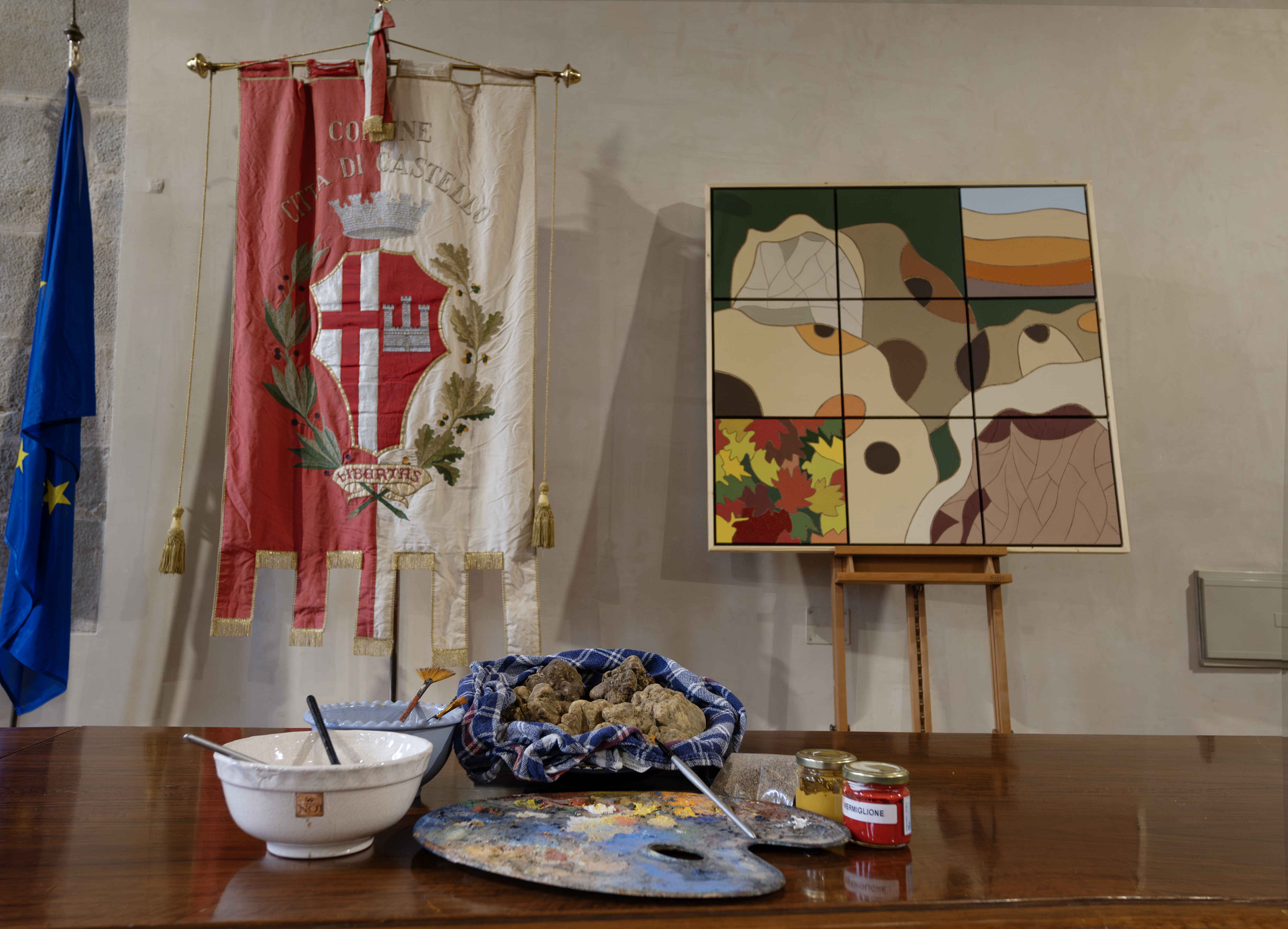 Un quadro dedicato al tartufo, oggetto del desiderio, la "trifola" altotiberina. La prima opera d'arte di questo genere mai realizzata utilizzando assieme ai colori naturali anche scaglie di prezioso tartufo bianco