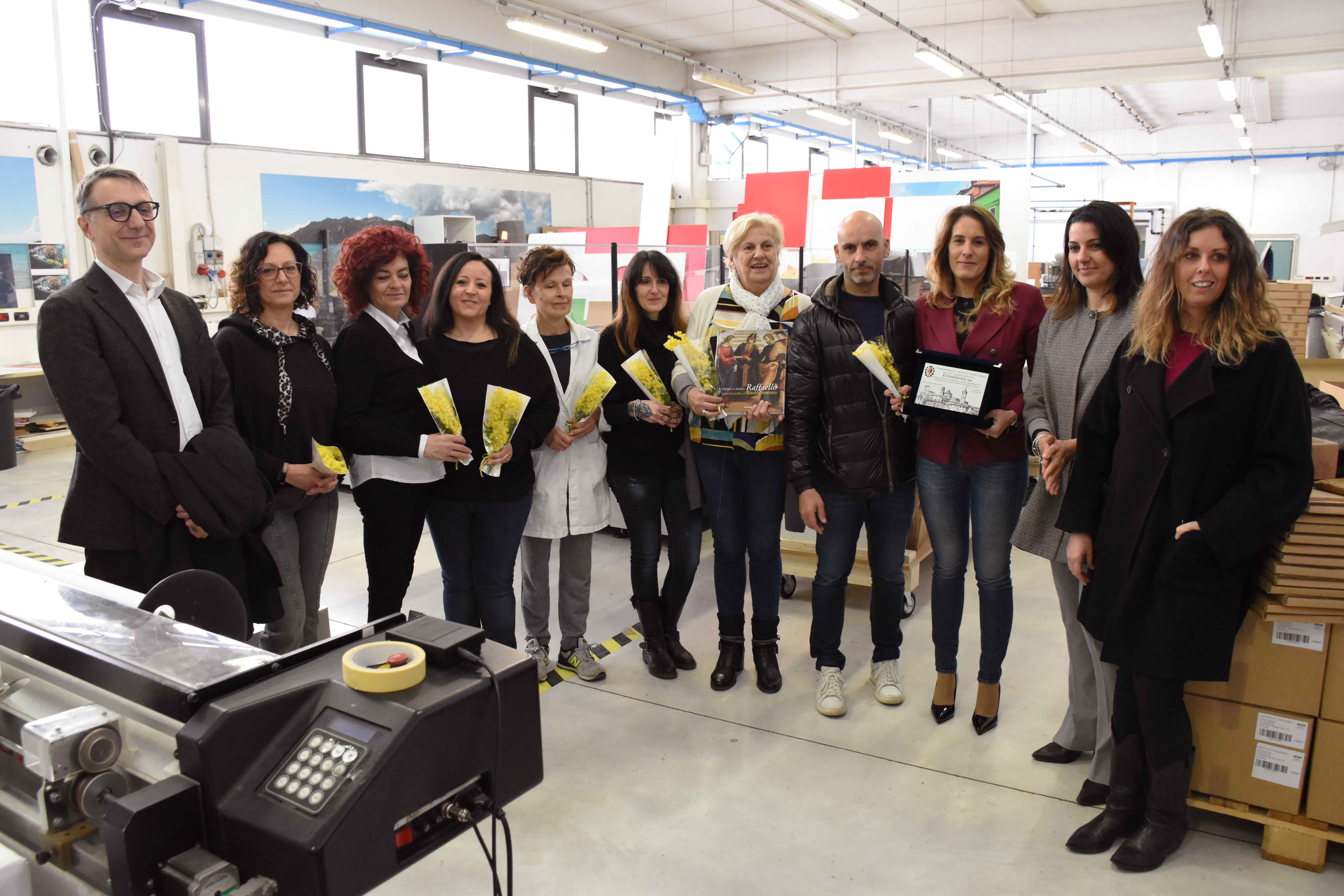 Imprese “rosa”. Sette donne coraggiose al timone di una storica azienda tipografica hanno difeso con coraggio di lavoro superando difficoltà di varia natura e avversità della vita. Uno dei simboli della Giornata Internazionale della Donna sono loro: Nadia Giorgeschi, Monica Veschi, Fiorella Podrini, Marta Scarabicchi, Roberta Volpi, Anna Rita e Tatiana Castellani, dell’azienda Linoservice Sas, leader nella prestampa e stampa digitale. Nel 2020 la scomparsa improvvisa del titolare, fondatore dell’azienda, uno dei pionieri del settore grafico-tipografico che ha fatto la storia del distretto di Città di Castello fra i primi a livello nazionale per tradizione, qualità e produzione, ha messo con le spalle al muro la moglie, la nipote e le altre dipendenti che dopo alcuni giorni di comprensibile smarrimento e disperazione non c’hanno pensato troppo se chiudere o andare avanti con una conduzione tutta al femminile. Così è stato. Una bella storia di resilienza, determinazione e solidarietà, che il comune, ha voluto celebrare proprio in questi giorni che precedono l’8 marzo, questa mattina, con una breve ma sentita cerimonia in azienda fra le macchine e i bancali di carta e i colori, alla presenza del presidente della sezione altotiberina di Confindustria, Raoul Ranieri e don Giorgio Mariotti, sacerdote da tempo impegnato sui temi sociali. Il sindaco, Luca Secondi, assieme agli assessori, Michela Botteghi, Letizia Guerri e Benedetta Calagreti, ha consegnato alla titolare dell’azienda e dipendenti una targa ricordo della giornata in cui si sottolineano i valori “etici in ambito lavorativo e sociale”. La storia dell’azienda. La Linoservice, nasce nel 1972, da un giovane tifernate, Claudio Mancini che insieme ad altri due soci decidono di intraprendere questa avventura, che li vedrà per anni protagonisti della stampa in Valtiberina. Claudio nei primi anni 60, appena sedicenne, con un diploma in tasca della scuola “Arti Grafiche” decide di andare a Roma per iniziare il suo percorso lavorativo che poi sarebbe diventata la sua vita. La grande città non era di sicuro per lui, così dopo circa sei anni e una discreta esperienza accumulata, decide di tornare a Città di Castello. Inizia a lavorare presso la tipografia STE. Poi con il passare del tempo la voglia di mettersi in proprio lo portano a fare il grande passo e dare vita alla Linoservice. L’attività lavorativa ha inizio con le macchine Linotype, (da qui infatti il nome Linoservice), la prima macchina per la composizione tipografica automatica: si trattava di una sorta di macchina da scrivere collegata a una fonderia in miniatura. Il linotipista digitava il testo su una tastiera, la pressione di un tasto liberava la matrice del carattere corrispondente che andava a “cadere” sulla riga di testo. A mano a mano iniziarono ad arrivare le prime dipendenti che poi con il tempo sarebbero diventate più che una famiglia. Lo dimostra il fatto che dopo 35 anni, Nadia, Monica, Fiorella, Marta, Roberta, Anna Rita e Tatiana, sono ancora qui a condividere valori comuni. “Tutte noi abbiamo frequentato l’Istituto Professionale per l’industria e l’artigianato con indirizzo Grafico di Città di Castello – precisa Tatiana Castellani, titolare e nipote del fondatore Claudio Mancini - appena uscite dalla scuola siamo entrate in questa realtà e non ne siamo più uscite, trovando qui un luogo fatto di amicizia e rispetto reciproco, certo non senza a volte, discussioni e pareri diversi che ci hanno portato e ci portano a scontrarsi, ma sempre in maniera costruttiva cercando di trarne poi il maggior beneficio”. “In tutti questi anni al fianco di mio zio Claudio siamo cresciute, abbiamo imparato a “voler bene” a questo lavoro, a sentirlo proprio e a mettere anche qualcosa di nostro. Ancora oggi a volte mi ritrovo a pensare alle cose che mi diceva, a volte urlate, ma sempre con il fine di farmi crescere, di farci crescere. Conciliare il lavoro con la famiglia per una donna non è certo facile, in un mondo, il nostro, prettamente “maschile” farsi spazio senza trascurare i “doveri” che ci aspettano con figli, casa ecc.. e anche su questo ci siamo coese aiutandoci l’una con l’altra affrontando di volta in volta. Nel 2020 purtroppo improvvisamente è venuto a mancare il cardine di questa società, la colonna dell’azienda, Claudio marito di Anna Rita Castellani. “Ci siamo sentite mancare la terra sotto i piedi sia per il dolore immenso che questa perdita ci ha lasciato sia perché ci siamo trovati a decidere se continuare o smettere. Poi però la moglie Rita, mia zia, che sempre è stato il cardine tra Claudio e tutte noi, con coraggio ci siamo “rimboccate” le maniche e siamo andate avanti.” Da quel momento Tatiana è subentrata al posto dello zio, in un ruolo non certo facile, e Rita le è rimasta accanto da supporto e spalla fondamentale per la gestione e organizzazione aziendale. Poi è arrivato il Covid, la pandemia che ha sconvolto tutti e rischiato di mettere a tacere entusiasmo e speranza. “E’ stata dura, anzi durissima – prosegue con la voce rotta dall’emozione, la titolare dell’azienda, affiancata dalle colleghe - ma anche questa volta non ci siamo arrese, e come sempre insieme, con il sorriso e la voglia di non mollare stiamo uscendo anche da questo periodo. Oggi nel nostro piccolo siamo ancora una realtà che può “dire la sua” nel settore della prestampa e stampa digitale: lo dimostra il fatto che abbiamo investito su un nuovo macchinario da taglio, per chiudere il cerchio del reparto produttivo. Abbiamo sempre puntato sulla qualità, sul rapporto con il cliente, ci piace dedicargli del tempo che serve anche a noi per crescere ed imparare cose nuove. Lavoriamo con realtà importanti della nostra zona, siamo un “service” e la nostra porta è sempre aperta a tutti! Abbiamo realizzato lavori importanti come la mostra per la Fondazione Burri, “La Luce del Nero e tanti altr