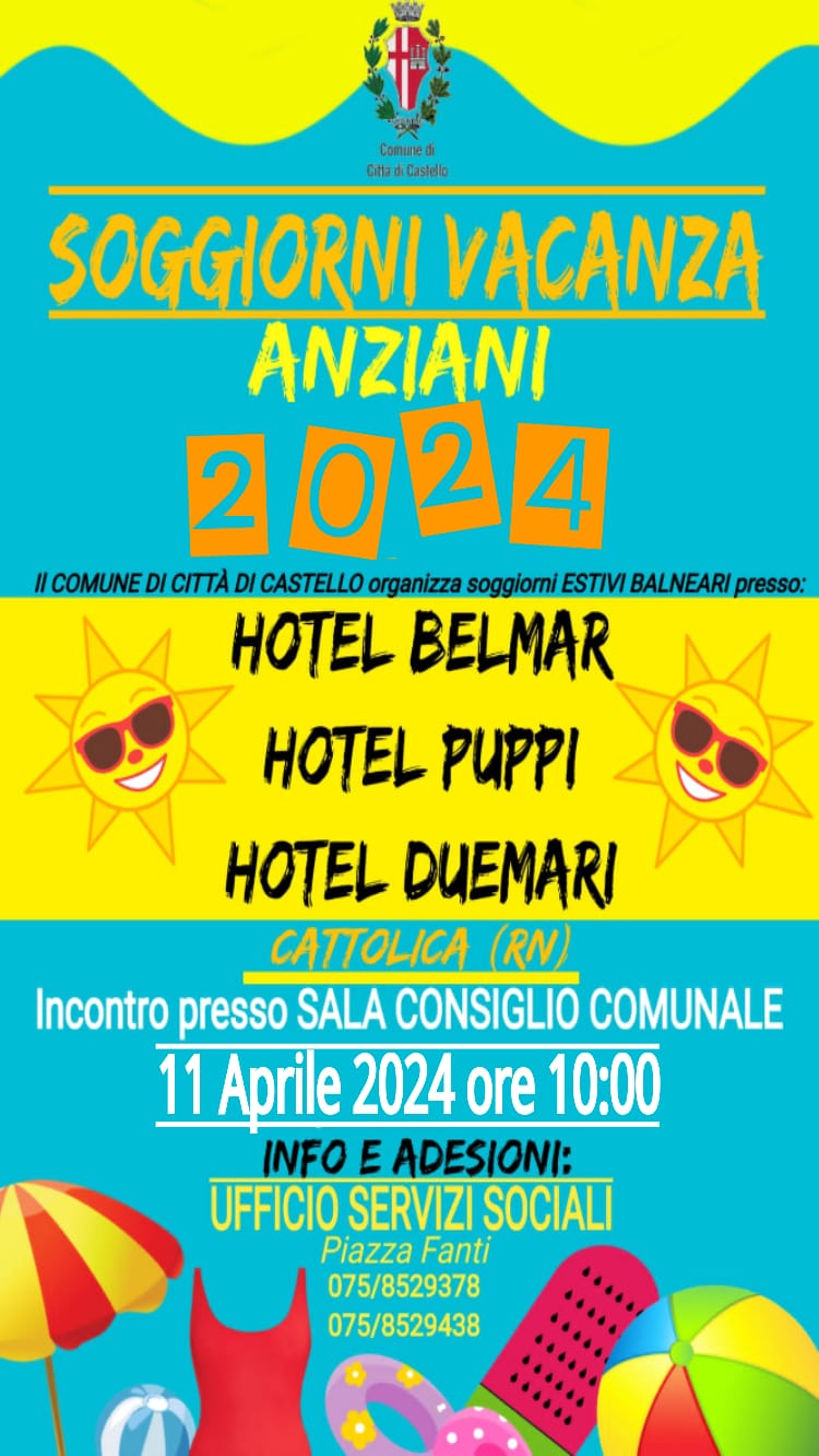 L’amministrazione comunale organizzerà a Cattolica i soggiorni balneari per anziani dell’estate 2024. I particolari della programmazione saranno resi noti nell’incontro pubblico convocato per giovedì 11 aprile, alle ore 10.00, nella sala del consiglio comunale di piazza Gabriotti. L’ufficio dei Servizi Sociali sarà a disposizione degli interessati per informazioni e adesioni nella sede di piazza Fanti e potrà essere contattato attraverso i numeri di telefono 075.8529378 e 075.8529438.
