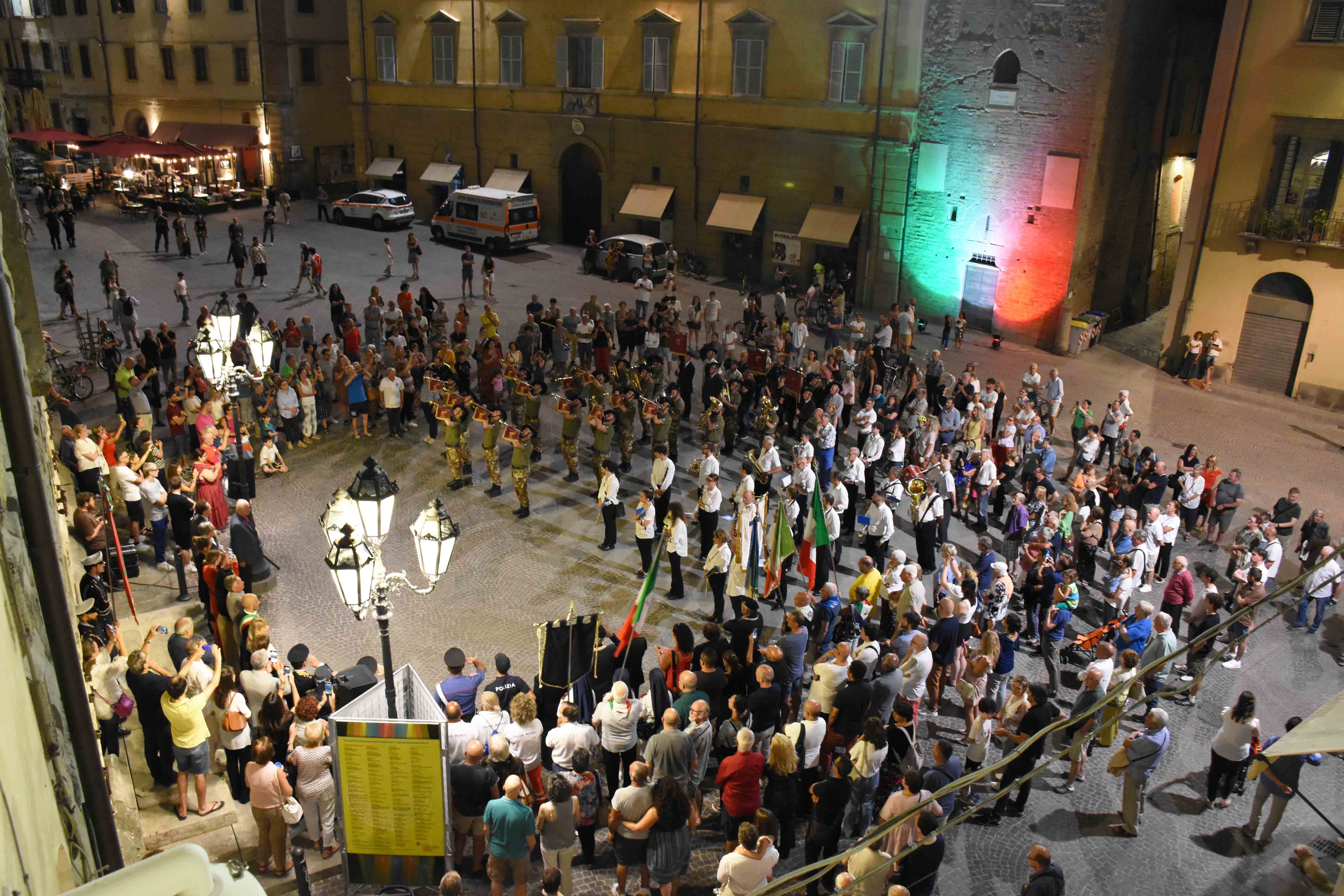 La libertà, la democrazia, l’uguaglianza sono sembrate le cose più belle del mondo ieri sera a Città di Castello, dove l’80° anniversario della Liberazione della città dal nazifascismo, avvenuta il 22 luglio del 1944, è stato vissuto nel segno dei valori fondanti della Repubblica Italiana, in un clima di festa e serenità, tra memoria e celebrazione, con la Fanfara dei Bersaglieri Renzo Reggianini di Gubbio e la Filarmonica Puccini che hanno trascinato ed entusiasmato i tanti tifernati accorsi nel centro storico. “La partecipazione della cittadinanza, numerosa, bella e sentita, ha impreziosito una serata consegnata alla storia come momento di unità e condivisione di principi che a 80 anni di distanza sono ancora, e per fortuna, la base della società civile nella quale viviamo e che vanno difesi come un patrimonio di tutti”, ha sottolineato il sindaco Luca Secondi, ringraziando tutti i presenti nel saluto sulla scalinata del palazzo del Comune che ha concluso la celebrazione. “Noi oggi celebriamo una conquista che ci ha resi liberi e questa libertà, costata la vita e tante sofferenze a chi ha vissuto quell’epoca, è un’eredità che dobbiamo saper onorare e proteggere ogni giorno con senso di responsabilità – ha detto Secondi - sapendo che è il rispetto delle persone ciò che ci permette di averne cura e di valorizzarla come fondamento per la convivenza civile nella nostra comunità e nel nostro Paese”. Il sindaco, accompagnato dai componenti della giunta comunale e dal presidente dell’assemblea elettiva cittadina Luciano Bacchetta, presente insieme ad alcuni componenti dell’assise, ha guidato il corteo che da porta Santa Maria, dopo la deposizione di una corona sotto la targa di Largo 22 luglio, ha risalito corso Vittorio Emanuele, piazza Matteotti, corso Cavour e piazza Gabriotti in un tripudio di emozioni. Le canzoni e la marcia a passo di corsa della Fanfara dei Bersaglieri hanno infiammato il centro storico e sono state degnamente sottolineate dall’esibizione della banda comunale. La presenza lungo le vie e le piazze attraversate dal corteo di tanti genitori con i figli, di nonni e nonne che hanno conosciuto i drammi dell’occupazione tedesca, di familiari dei reduci e delle vittime di guerra e di qualche ex bersagliere, che con l’affascinante moretto piumato orgogliosamente portato sulla testa ha accennato una piccola corsa, è stata lo spettacolo nello spettacolo di una celebrazione vissuta intensamente. Con il sorriso e con spirito unitario. Sulla scalinata della residenza municipale di piazza Gabriotti, nell’abbraccio di tutti i cittadini che hanno partecipato all’evento, delle associazioni combattentistiche, del corpo delle infermiere volontarie della Croce Rossa Italiana, delle autorità militari della città, gli interventi istituzionali hanno rafforzato il significato di un appuntamento con la storia importante per la comunità di Città di Castello. A dare valore e senso agli ideali di libertà e democrazia alla base della Costituzione Italiana, rimarcando l’importanza di conservare la memoria della storia e di responsabilizzare le nuove generazioni nella difesa dei valori della Repubblica italiana, sono state le parole del vicario generale della Diocesi di Città di Castello don Andrea Czortek, della presidente dell’ANPI Anna Maria Pacciarini, della vice presidente dell’Istituto di Storia Politica e Sociale Venanzio Gabriotti Ursula Masciarri e del senatore Walter Verini, presente sulla scalinata del Comune insieme al vice presidente dell’Assemblea Legislativa dell’Umbria Michele Bettarelli e al consigliere regionale Valerio Mancini. La suggestiva esecuzione dell’inno nazionale, cantato e suonato dalla Fanfara dei Bersaglieri, ha concluso la celebrazione, coronata poi da uno spettacolo pirotecnico che ha disegnato in cielo il tricolore della bandiera italiana, unendolo idealmente in un messaggio universale a quello che ha illuminato la torre civica di piazza Gabriotti per tutta la serata.