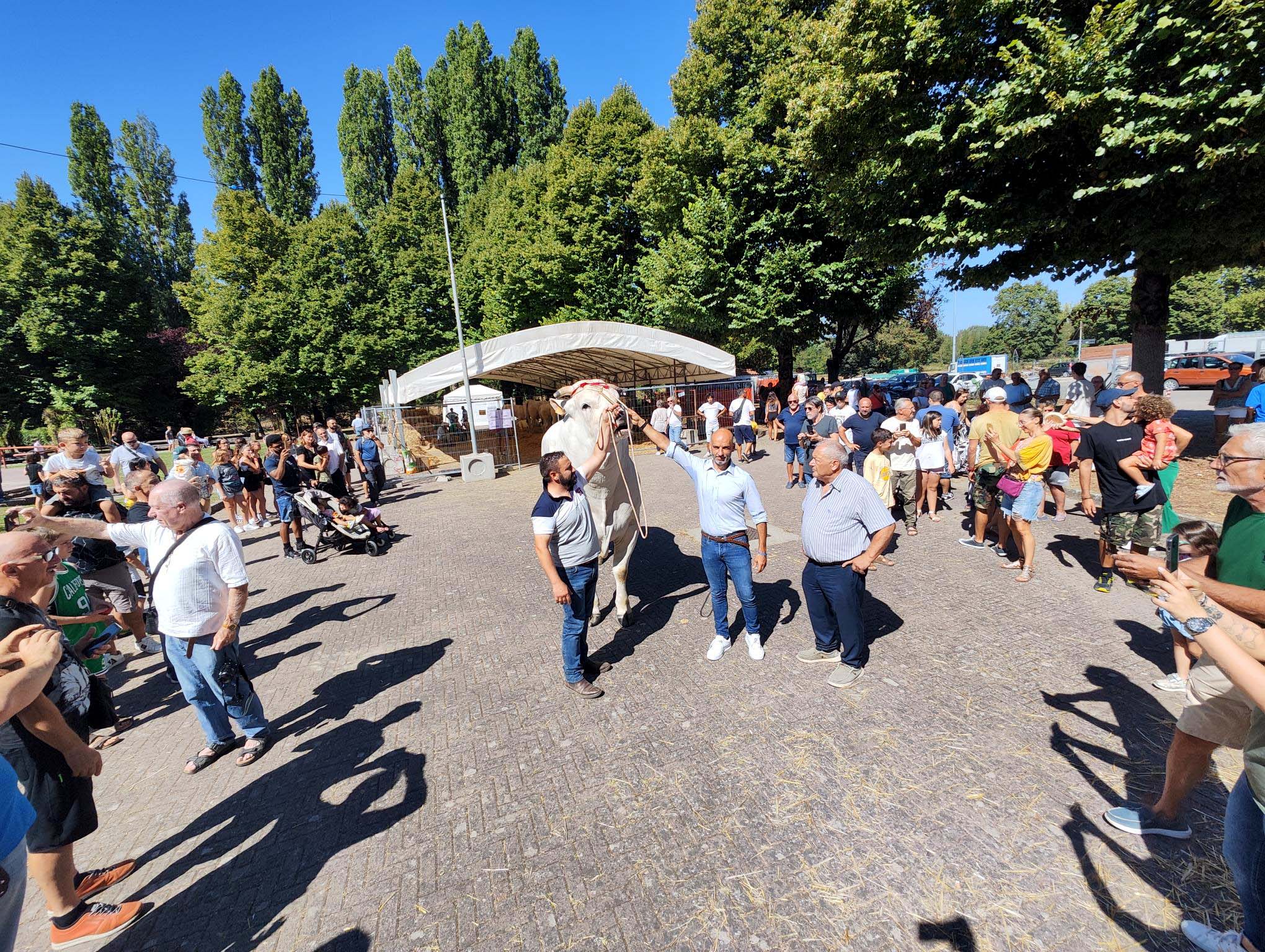 Non ci poteva essere vetrina migliore della Fiera di San Bartolomeo di Città di Castello per gli allevatori umbri. La manifestazione oggi è stata letteralmente invasa da una folla di tifernati curiosi e interessati, con tanti turisti che hanno fatto compagnia alle famiglie con i bambini che spuntavano ovunque tra i box degli animali della Mostra Zootecnica e tra gli stand della fiera delle merci. Il parco comunale Alexander Langer e piazzale Ferri, ridisegnato dai lavori in corso della variante del Cassero, sono sembrati davvero ideali per accogliere l’abbraccio della moltitudine di visitatori che fin dalle prime ore del mattino hanno popolato l’area a ridosso delle mura urbiche cittadine, dove anche la viabilità e i parcheggi, con la regia della Polizia Locale e il supporto dei volontari della protezione civile, hanno saputo rispondere adeguatamente al flusso incessante di auto e persone e piedi. Gli animali, le merci in mostra, dislocate anche in pazza Gabriotti, le attrazioni della manifestazione, i divertimenti per i bambini, hanno avuto sempre gli occhi addosso di un pubblico allegro ed entusiasta, che ha apprezzato l’offerta della fiera, nonostante qualche assenza dell’ultimo minuto alla Mostra Zootecnica per l’intenso caldo che ha costretto alcuni allevatori a rinunciare a portare tutti i propri animali. Dalla manifestazione si è alzato forte l’appello alle istituzioni pubbliche da parte degli allevatori, che, insieme alle associazioni di categoria del settore, hanno chiesto sostegno economico e interventi mirati per aiutare chi con passione, professionalità e sacrifici, ma soprattutto investimenti per il miglioramento delle razze e il presidio del territorio, sta mantenendo vivo un mondo della zootecnia che vanta in Umbria quasi 400 mila capi di bestiame e più di 3.000 aziende. Crisi climatica, aumento dei costi di produzione, concorrenza sleale delle importazioni, prezzi più bassi pagati ai produttori dai grandi gruppi agroalimentari, sono i motivi di sofferenza della zootecnia regionale denunciati dal presidente dell’Associazione Regionale Allevatori dell’Umbria e delle Marche Fabrizio Soro, con il direttore Claudio Bressanutti, da Mario Bruno Illuminati della CIA dell’Umbria, dalla presidente provinciale di Coldiretti Anna Chiacchierini e da Giacomo Manuali di Confagricoltura Umbria nella tavola rotonda moderata sabato pomeriggio dall’assessore all’Ambiente del Comune di Città di Castello Mauro Mariangeli, alla presenza del vice presidente dell’Assemblea Legislativa dell’Umbria Michele Bettarelli. Costruire una filiera completa della zootecnia umbra con una visione di rilancio del settore e premialità per gli allevatori della Chianina, l’ambito più in difficoltà, che investono nel miglioramento genetico della razza; avviare uno studio sulle caratteristiche delle aziende del territorio per indirizzare in maniera ottimale i necessari sostegni economici; promuovere la produzione umbra presso i consumatori della regione, anche con protocolli d’intesa con i Comuni rivolti alla valorizzazione del settore e all’introduzione di generi alimentari a chilometro zero nelle mense scolastiche; sburocratizzare il sistema per rimuovere ostacoli che condizionano le attività: sono alcune delle proposte emerse dal confronto. Oltre alla vicinanza e all’impegno del Comune di Città di Castello a sostegno degli allevatori, l’assessore Mariangeli ha colto l’occasione per segnalare come sulle mense scolastiche l’ente si sia già incamminato sulla strada della valorizzazione delle produzioni a chilometro zero e sia stato premiato dal Ministero competente per i menù 100 per cento biologici. “Far conoscere il lavoro degli allevatori e dare voce alle loro istanze, ascoltandoli e facendoci carico per quanto nelle nostre possibilità delle loro esigenze, era un obiettivo primario di questa edizione della fiera di San Bartolomeo, insieme alla valorizzazione di uno degli eventi storici più amati della città, che anche quest’anno si è confermato un appuntamento veramente atteso e partecipato dai tifernati”, dichiarato il sindaco Luca Secondi insieme all’assessore al Commercio e al Turismo Letizia Guerri. Il primo cittadino ha preso parte alla cerimonia di inaugurazione insieme al vice presidente dell’Assemblea Legislativa dell’Umbria Michele Bettarelli, al vicario generale della Diocesi di Città di Castello don Andrea Czortek e ad alcuni consiglieri comunali. “Ringraziamo tutti coloro che hanno contribuito alla riuscita della manifestazione e hanno reso possibile un momento di riunione così sentito dalla nostra comunità e una ribalta importante, che ci voleva, per il mondo dell’allevamento umbro e per gli operatori del settore”, ha sottolineato Secondi, che ha visitato la Fiera di San Bartolomeo e ha premiato gli allevatori più giovani della manifestazione, Gabriele e Francesco, dell’azienda agricola Pettinari di Gubbio. Oltre a salutare gli espositori, i volontari della Società Rionale Madonna del Latte e della Pro Loco di Piosina, i balestrieri della Compagnia di Città di Castello, Secondi non si è sottratto a un incontro ravvicinato con la star dell’edizione, il toro “Nepal”, circa 1.400 chilogrammi di peso e quasi due metri di altezza al garrese, campione italiano senior di razza Chianina nel 2024, che il proprietario Marco Lucchetti ha fatto uscire dal box, suscitando lo stupore e l’ammirazione dei visitatori, che si sono accalcati per scattare foto e selfie. Per tutta la giornata adulti e bambini hanno avuto l’opportunità di avvicinarsi e toccare gli animali della Mostra Zootecnica, gli imponenti capi di Chianina, ma anche ovini, caprini, asini, pony e cavalli collocati nell’area del parco Langer, di divertirsi con le attività della Fattoria di Dora e i numeri di mago Merletto, ma anche di provare a tirare con la balestra, nel campo da tiro allestito dalla Compagnia di Città di Castello. Tra gli acquisti de